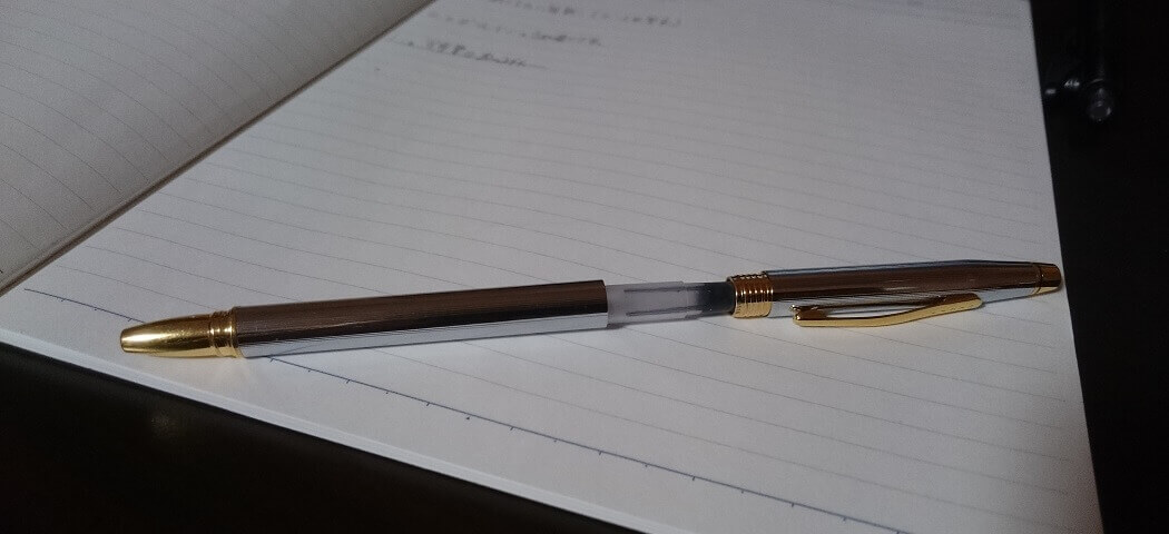 会社の朝礼を終わった後に万年筆を貰いました。せっかくもらったので書いてみようかなと、フタを開けようとすると…