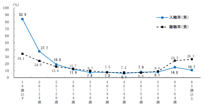 年齢階級別入職率・離職率(男)